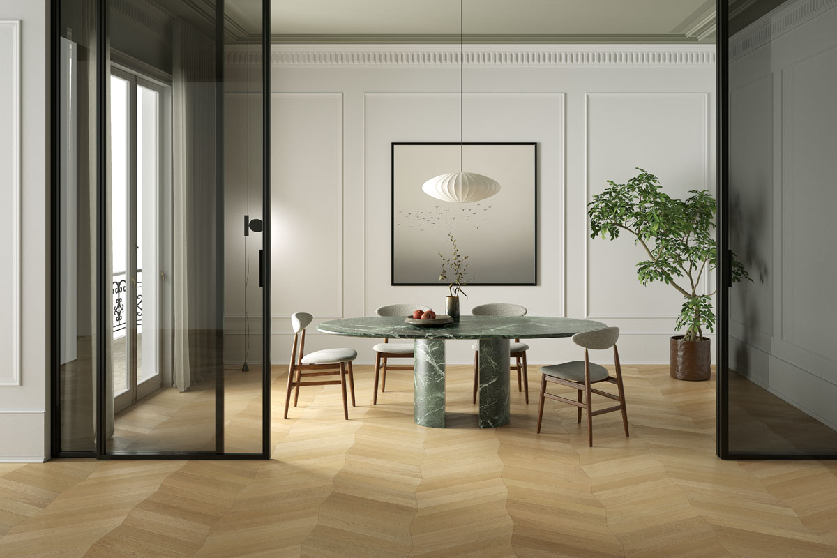 Il fascino eterno dei pavimenti in legno naturale rivive nelle prestigiose interpretazioni contemporanee, in armonia con la natura e il benessere.